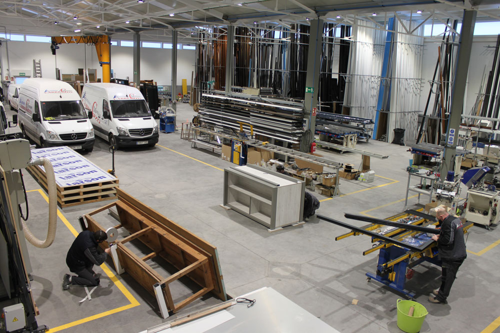 Nuestras instalaciones están diseñadas para garantizar un proceso de trabajo ágil, preciso y bien organizado. Contamos con zona de fabricación, área de montaje y espacios de almacenamiento que nos permiten planificar cada proyecto con control y eficiencia.